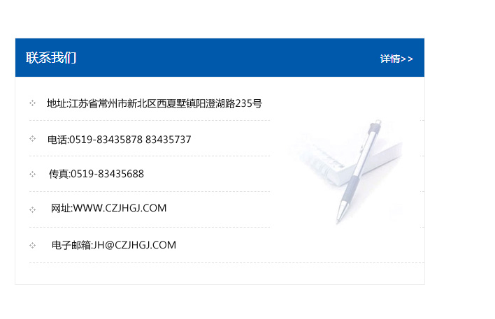 傳真:0519-83435688    郵編:213135    網址:WWW.czjhgj_com.zjhshm.com    電子郵箱:JH@czjhgj_com.zjhshm.com